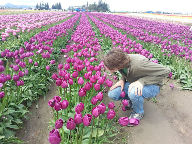 Last weekend we and our friends Arielle and Matt went up to Skagit Valley for the 30th Annual Skagit Valley Tulip Festival. Its about an hour north of Seattle. There are fields upon fields of daffodils and tulips of all colors and varieties. A beautiful sight to see. Its a bit what I picture the Netherlands being like.